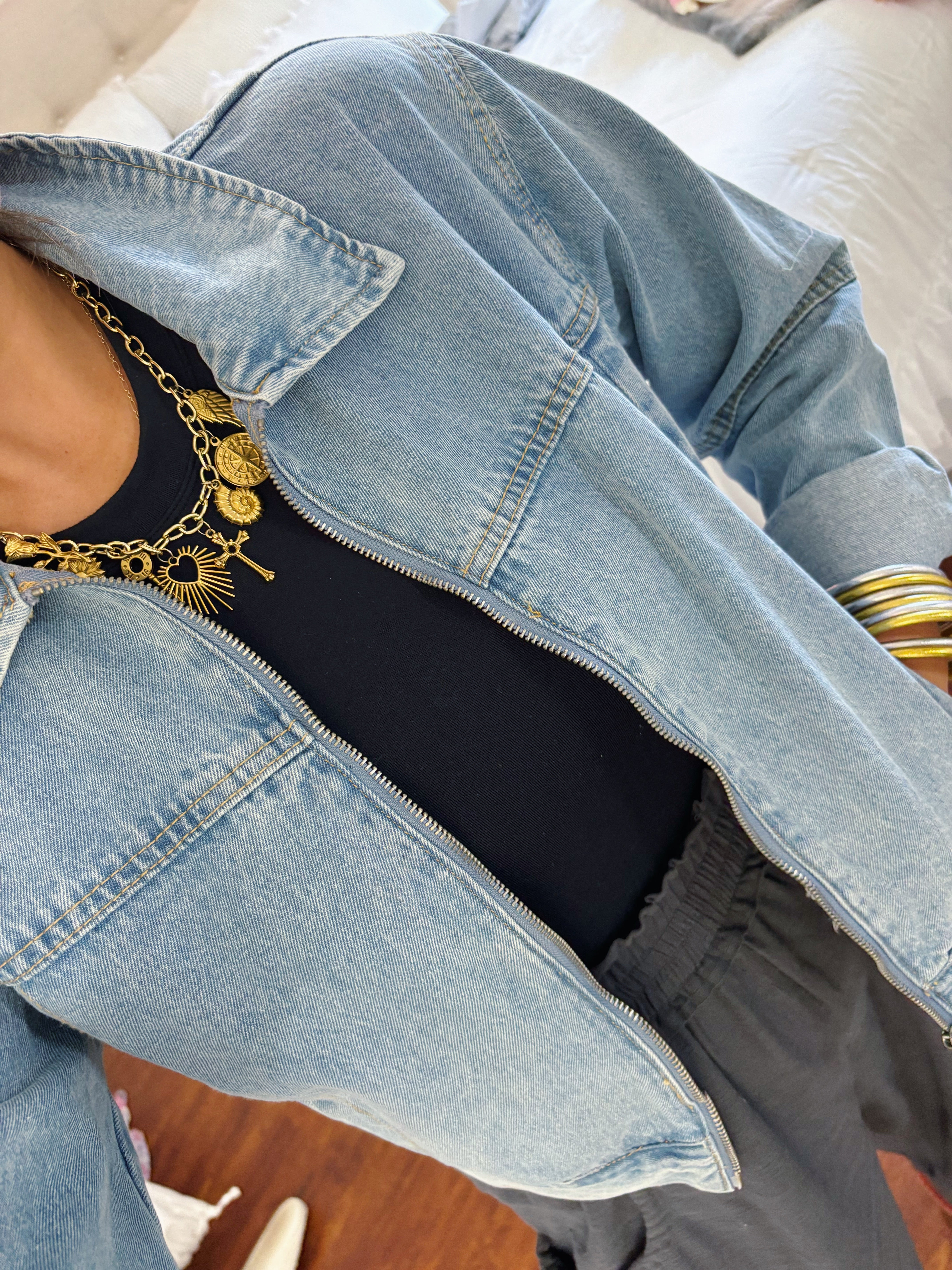 ZIPPERED DENIM JACKET