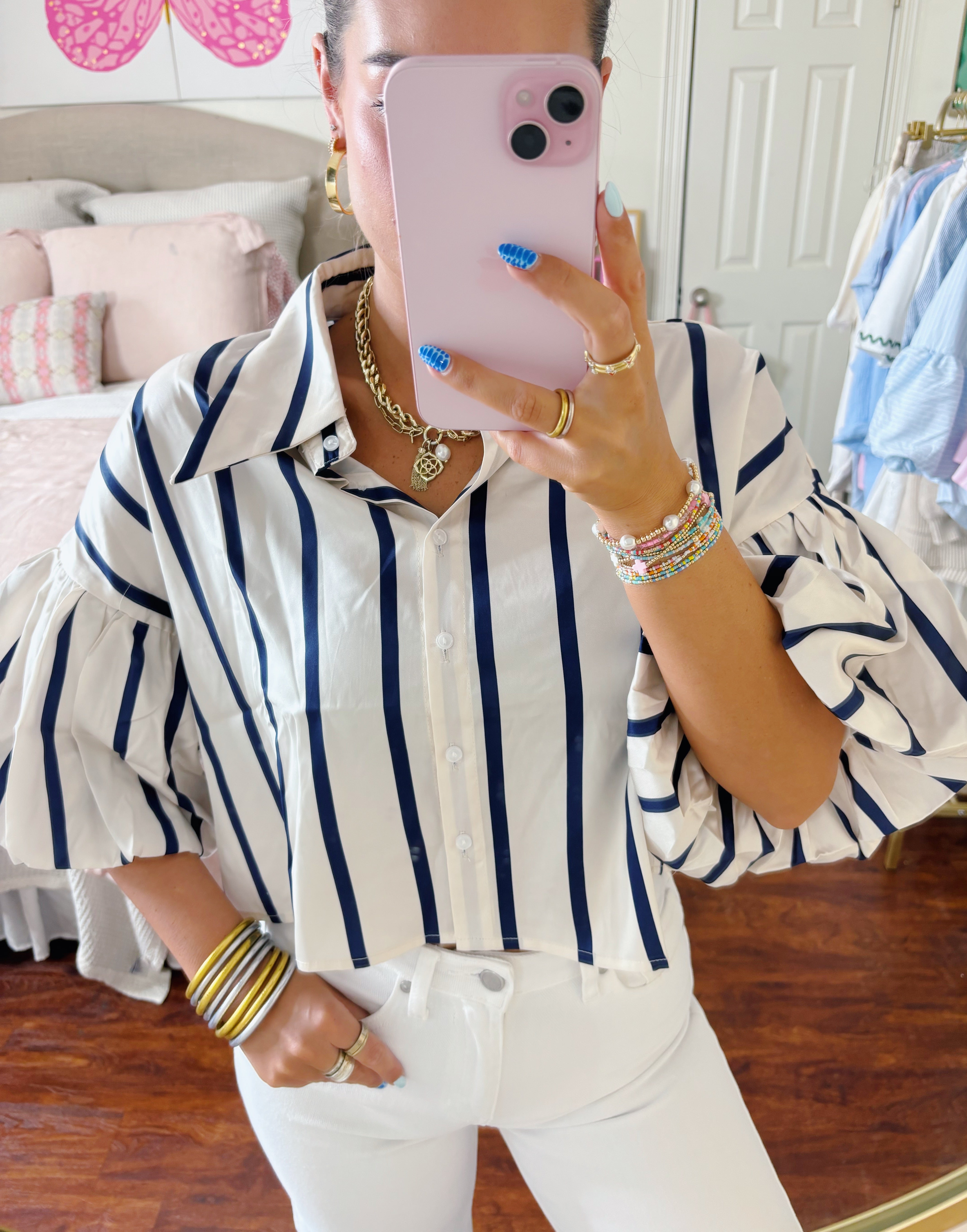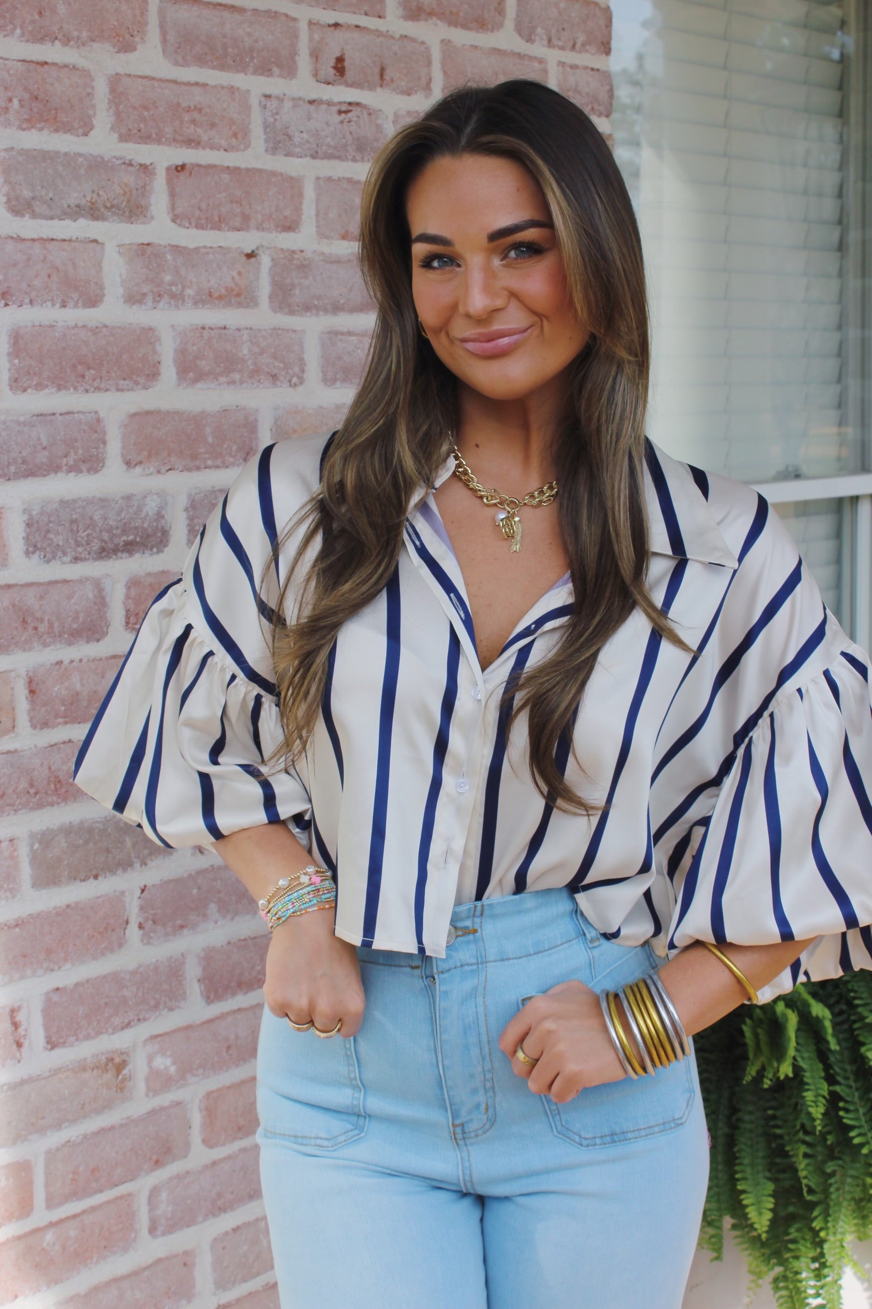 Navy Blue Striped Top